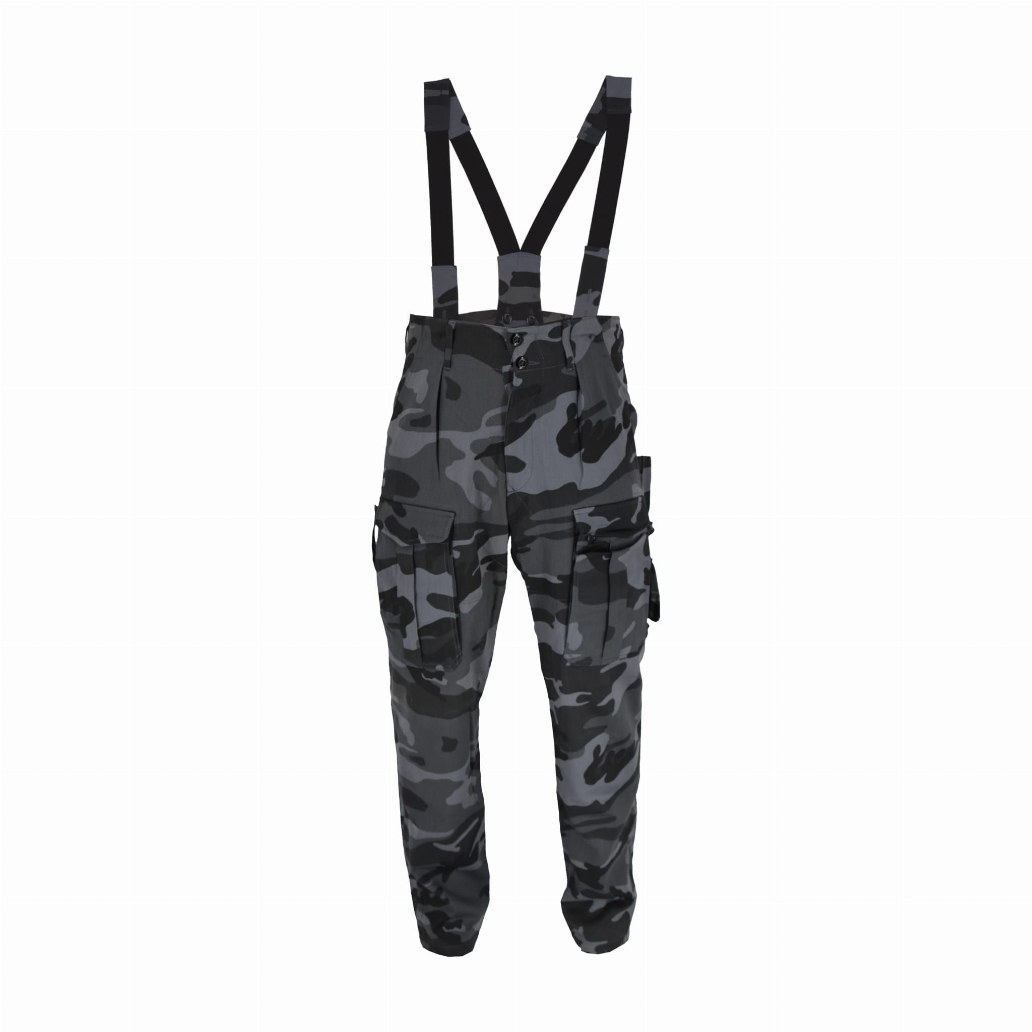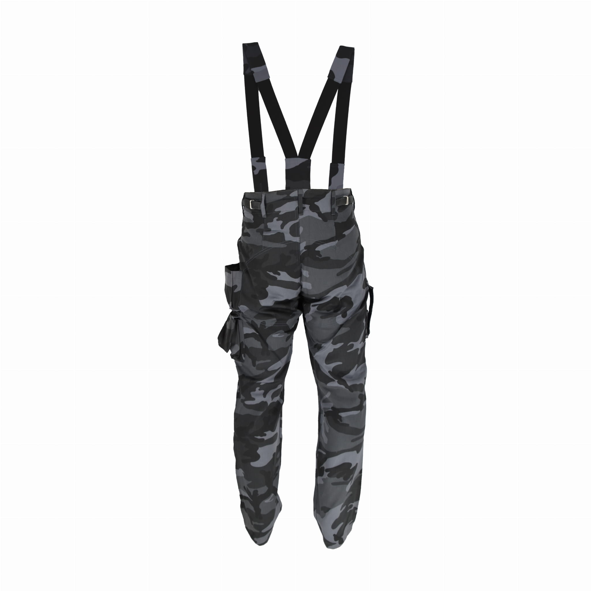 Spodnie od munduru pracownika ochrony, wzmacniane na pośladkach. Spodnie posiadają dwie kieszenie wewnętrzne, dwie kieszenie na udach oraz trzy wąskie na bokach. Spodnie nie posiadają ściągacza i gumki u dołu nogawki.